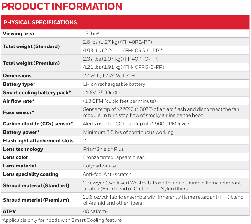 40 Cal/cm² Prism Shield® Plus Pro-Hood Technical Specifications: -